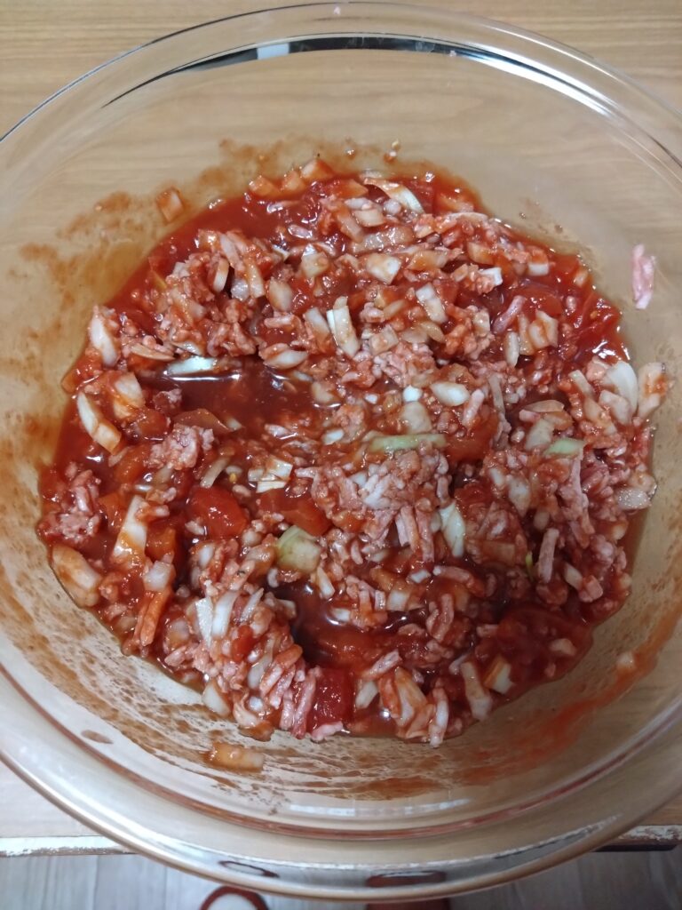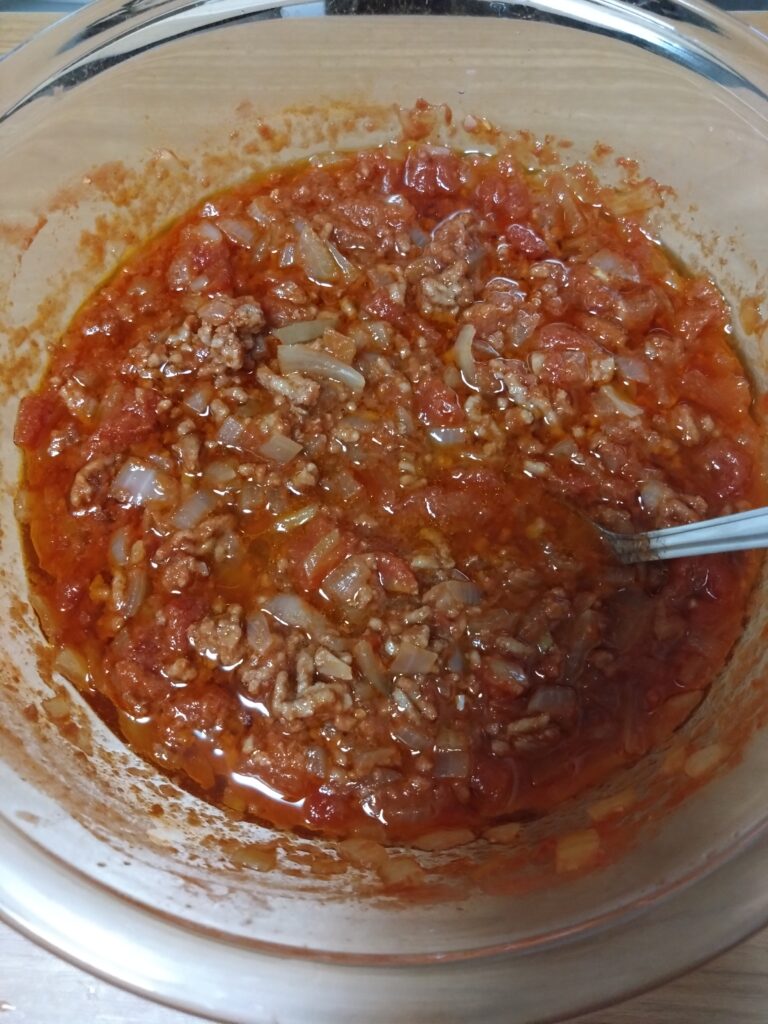 材料も分量もいつもフライパンで作るときと全く同じ。豚びき肉、玉ねぎ、ケチャップなどの調味料を全てボウルに入れて約13分加熱。いつもの味になるはず、と思っていたのですが——